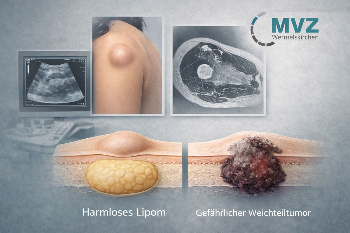 Ein Lipom ist meist harmlos. Sicherheit entsteht jedoch nicht durch Abwarten oder Googeln, sondern durch eine fachärztliche Untersuchung. Wenn Sie einen neuen oder wachsenden Knoten bemerken, lassen Sie ihn abklären.